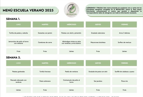 Infórmate de la Programación, contenido, fechas, precios y horarios de la escuela de verano 2.025 y de la Información adicional para padres/madres